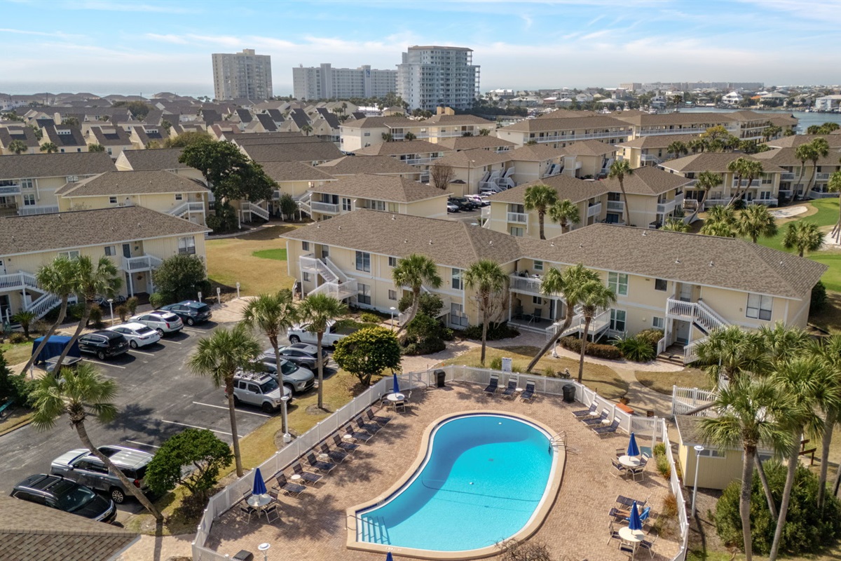 From your front door, you’ll enjoy a view of one of the resort’s pools, and the private beach access and marina are just approximately 0.4 miles away — close enough for a short walk or quick drive.